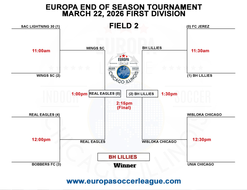 | 3:15 PM | Real Eagles vs Unia Chicago | 6 - 2 | Field 2 | ||